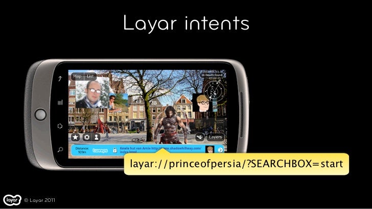- 24. Layar intents layar://princeofpersia/?SEARCHBOX=start© Layar 2011